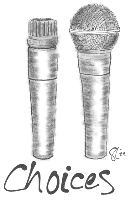 I have a music nerd t shirt for sale that is two classic microphones that are in my profile pic under scripted with “choices”.